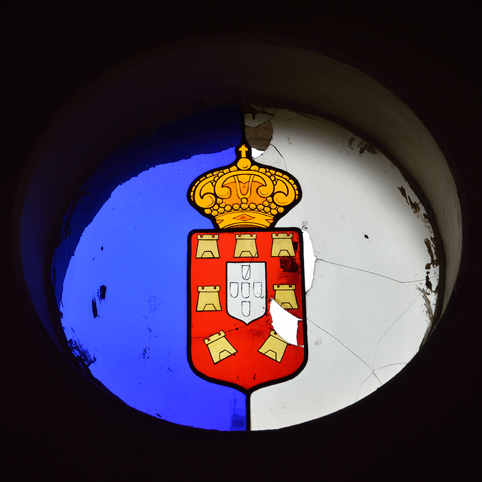 - Também na fachada principal da Vila Itororó veem-se diversos vitrais circulares, além da inscrição MCMXXII – a data de inauguração do complexo. / One of several Vila Itororó´s circular stained glasses can also be seen on the main façade, besides the inscription MCMXXII – the date on which the complex was inaugurated.