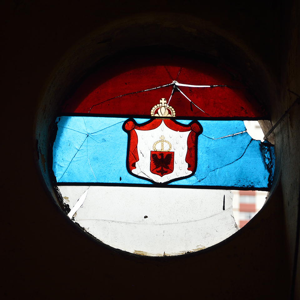 - Também na fachada principal da Vila Itororó veem-se diversos vitrais circulares, além da inscrição MCMXXII – a data de inauguração do complexo. / One of several Vila Itororó´s circular stained glasses can also be seen on the main façade, besides the inscription MCMXXII – the date on which the complex was inaugurated.