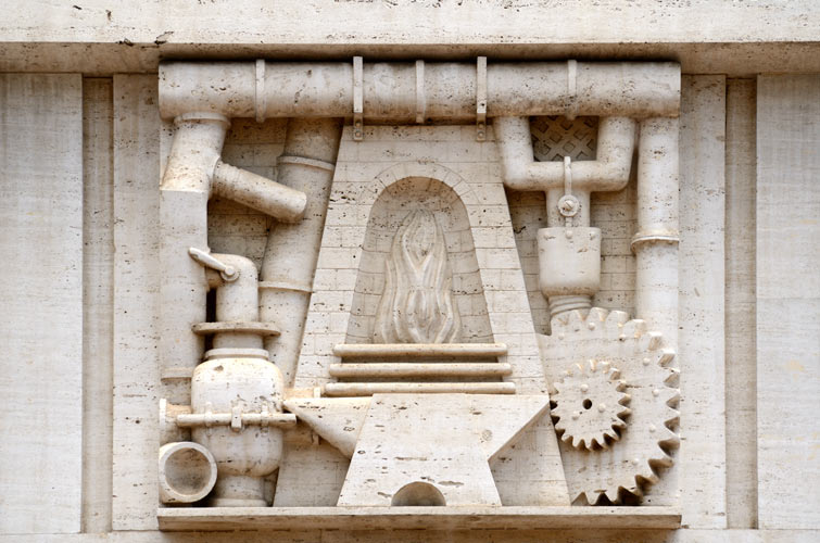 Um imenso tear representa a Indústria Têxtil, poderoso braço industrial dos Matarazzo.